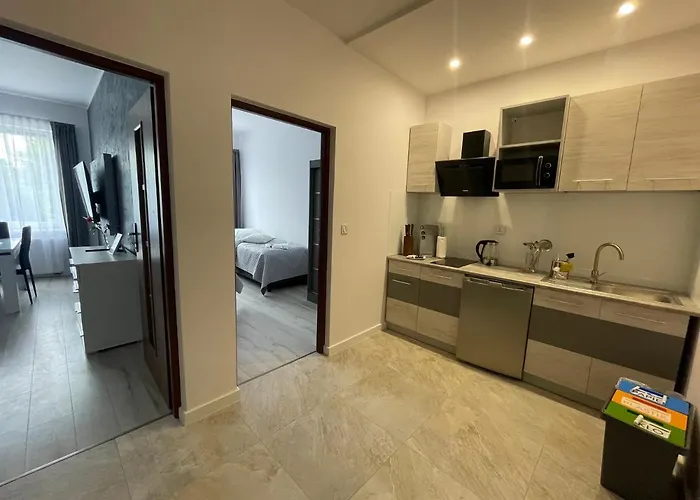 Apartamenty "Szkielko"は台所が備わっており、自身で食事を作りたいお客様に最適です。 最寄りのバス停ZUSは、宿泊施設から約600メートル先にあります。